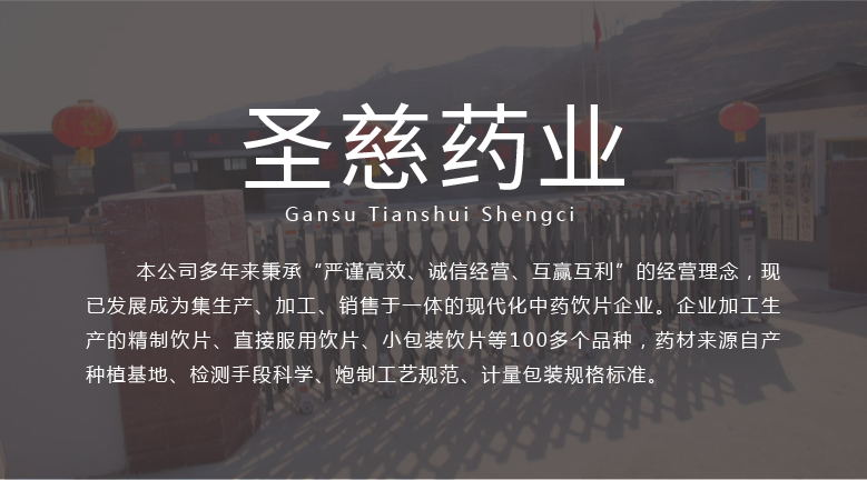 甘肅天水圣慈藥業(yè)有限公司成立于2016年11月8日,注冊(cè)資本500萬(wàn)元,位于甘肅省天水市張川回族自治縣張川鎮(zhèn)中城南路,本公司多年秉承“嚴(yán)謹(jǐn)高效、誠(chéng)信經(jīng)營(yíng)、互贏互利”的經(jīng)營(yíng)理念,現(xiàn)已發(fā)展成為集生產(chǎn)、加工、銷(xiāo)售于一體的現(xiàn)代化中藥飲片企業(yè)。企業(yè)加工生產(chǎn)的精制飲片、直接服用飲片、小包裝飲片等100多個(gè)品種,藥材來(lái)源自產(chǎn)種植基地、檢測(cè)手段科學(xué)、炮制工藝規(guī)范、計(jì)量包裝規(guī)格標(biāo)準(zhǔn)。